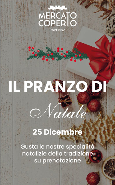Gusta le speciali proposte Tutti i giorni a pranzo e a cena dal 24 al 26 Dicembre PER IL GIORNO DI NATALE al Mercato Coperto trovi anche: il carrello del bollito il carrello dei dolci Scopri la Carta delle Feste INFO E PRENOTAZIONI 0544 244611 - 3343664030 | info@casaspadoni.it